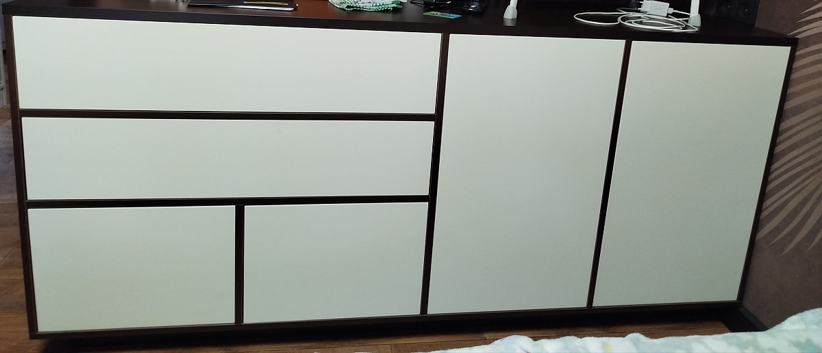 Долго выбирали комод, но нам всё не подходило то по размеру, то по цвету и вдруг случайно попался этот сайт - это просто магия! Можно самим подобрать цвет и отрегулировать размер. Огромный выбор дизайнов! Этот вариант нам пришёлся очень по душе. Пошаманили с конструкцией и цветом, и вуаля - комод готов. Он очень эргономичный  и вместительный. Так же очень понравился квалифицированный и отзывчивый персонал, клиентоориентированные менеджеры, скорость и качество изготовления. Спасибо огромное! Единственное мы немного прогадали с цветом фасадов, но это в принципе всё поправимо.