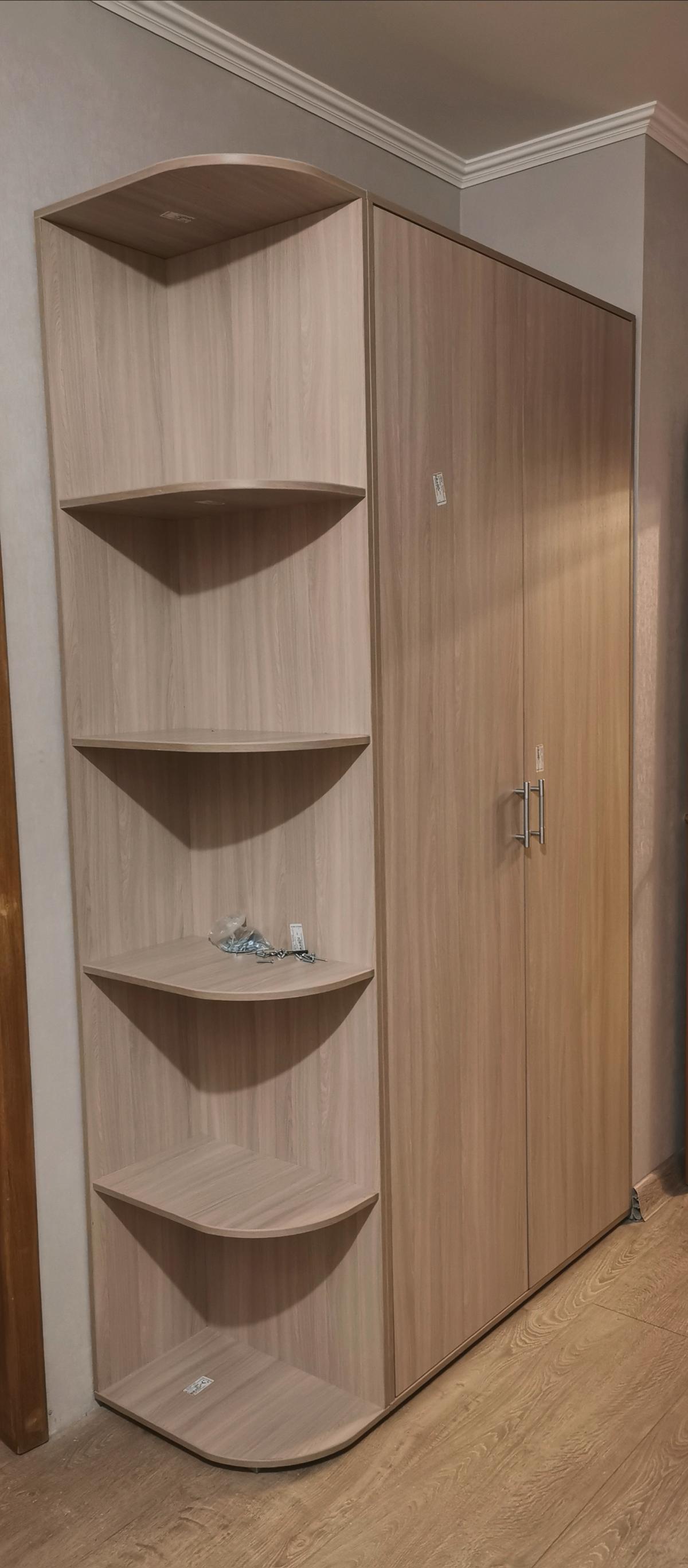 Шкаф пришел в срок,собрали сами.Брака не обнаружилаЗаказ 00000497902, изделие Шкаф угловой Логика BMS (900х2100х450) (Платье - Белье (угл.))