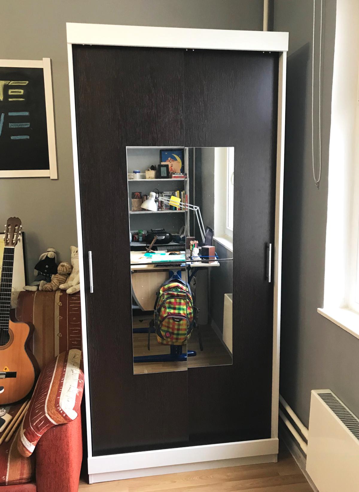 Заказ 00000433333. Купили сыну в комнату после ремонта шкаф-купе МСК 2 BMS. Мы выбрали сочетание цветов белый и венге. Шкаф вписался в интерьер комнаты просто отлично. На удивление занимает совсем немного места, а внутри оказался очень вместительным и удобным. Покупкой абсолютно довольны и мы и сын.