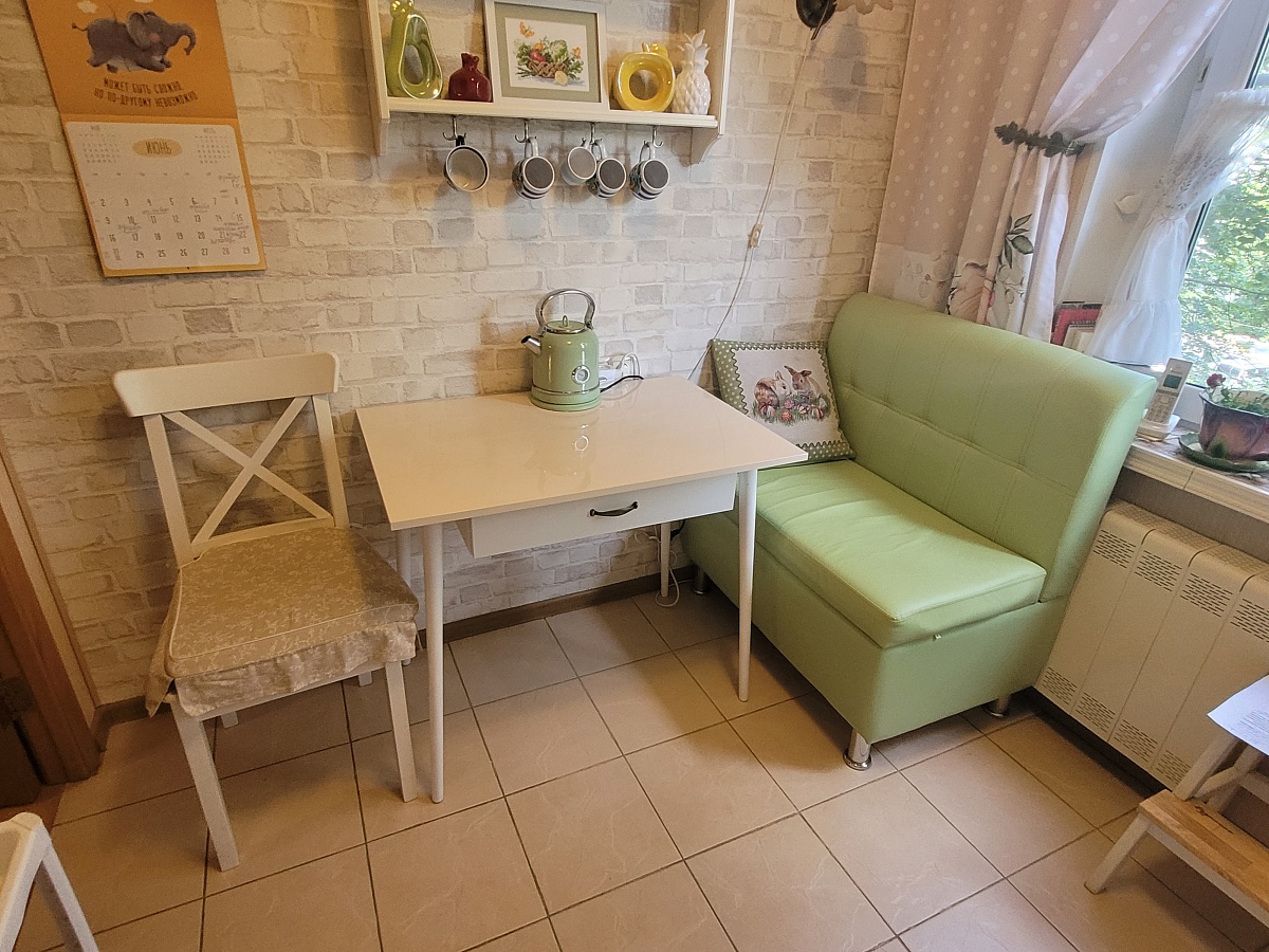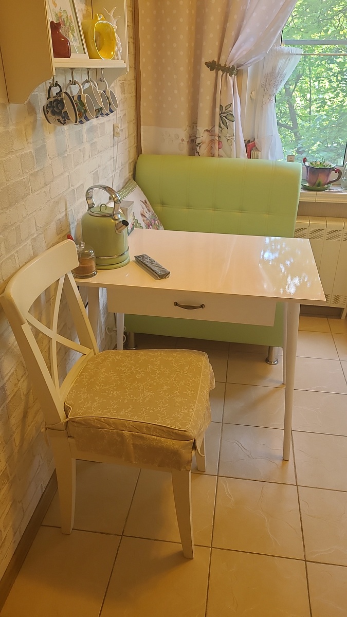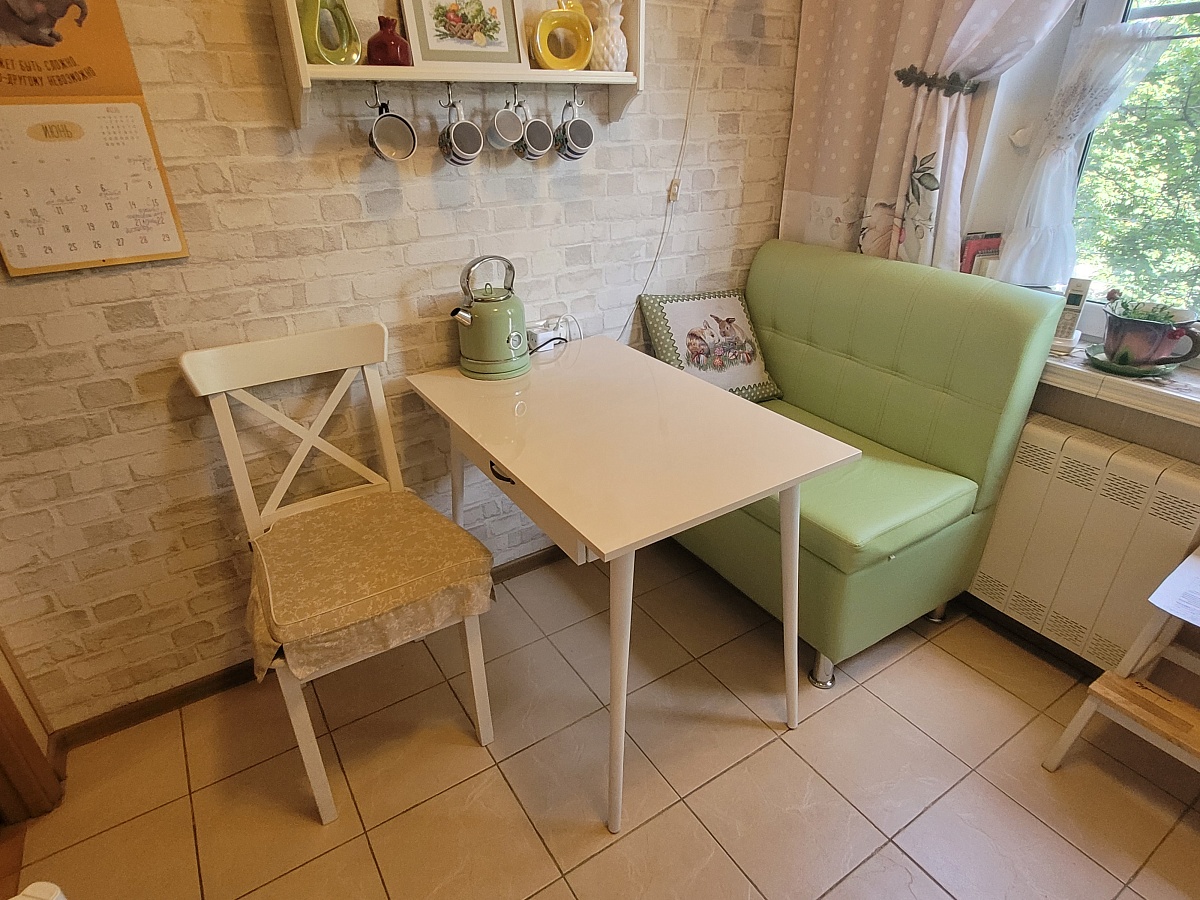 Стол  великолепный, столешница просто огонь, мдф ваниль глянец, огромный ящик, с полным выдвижением.