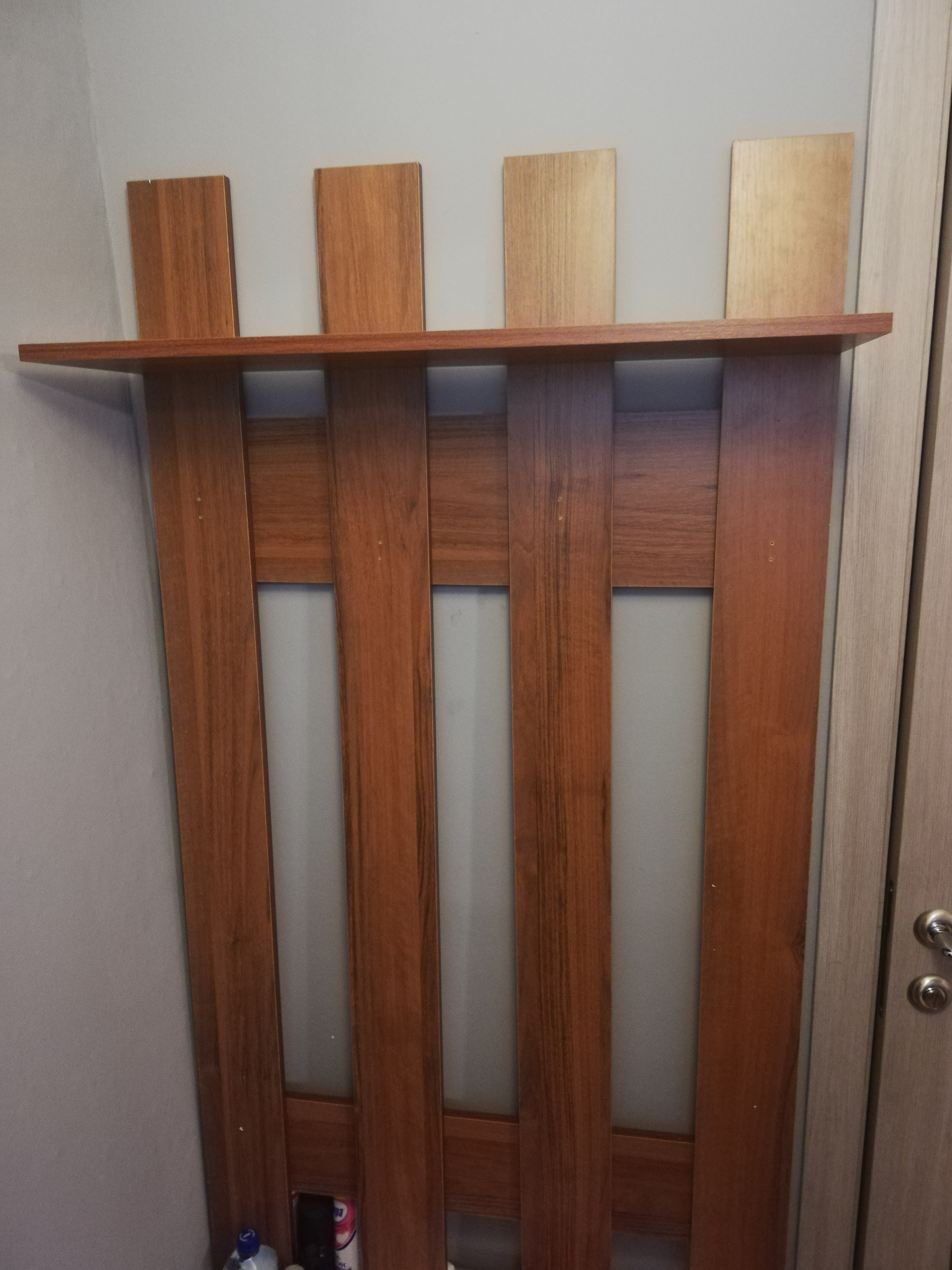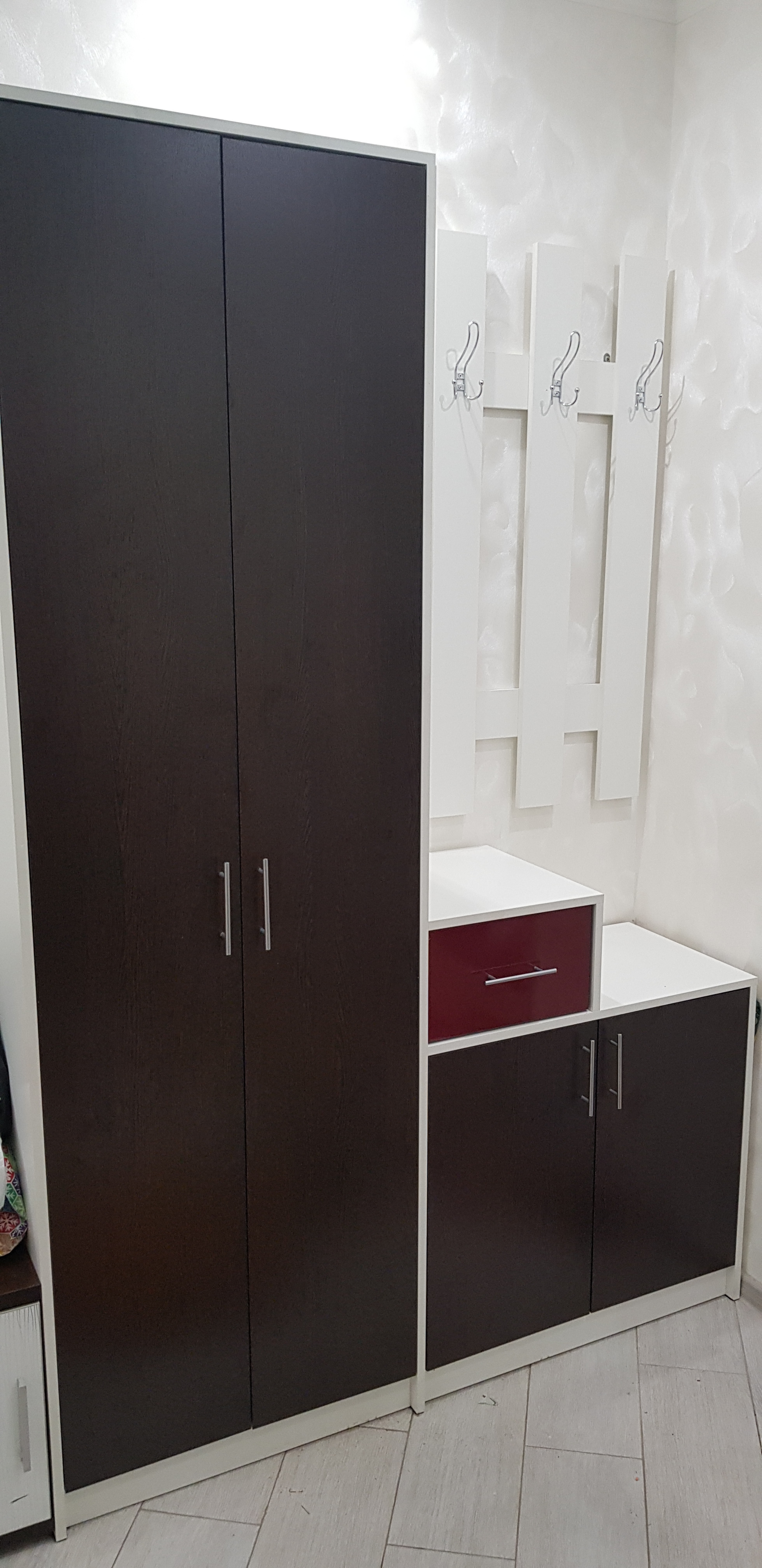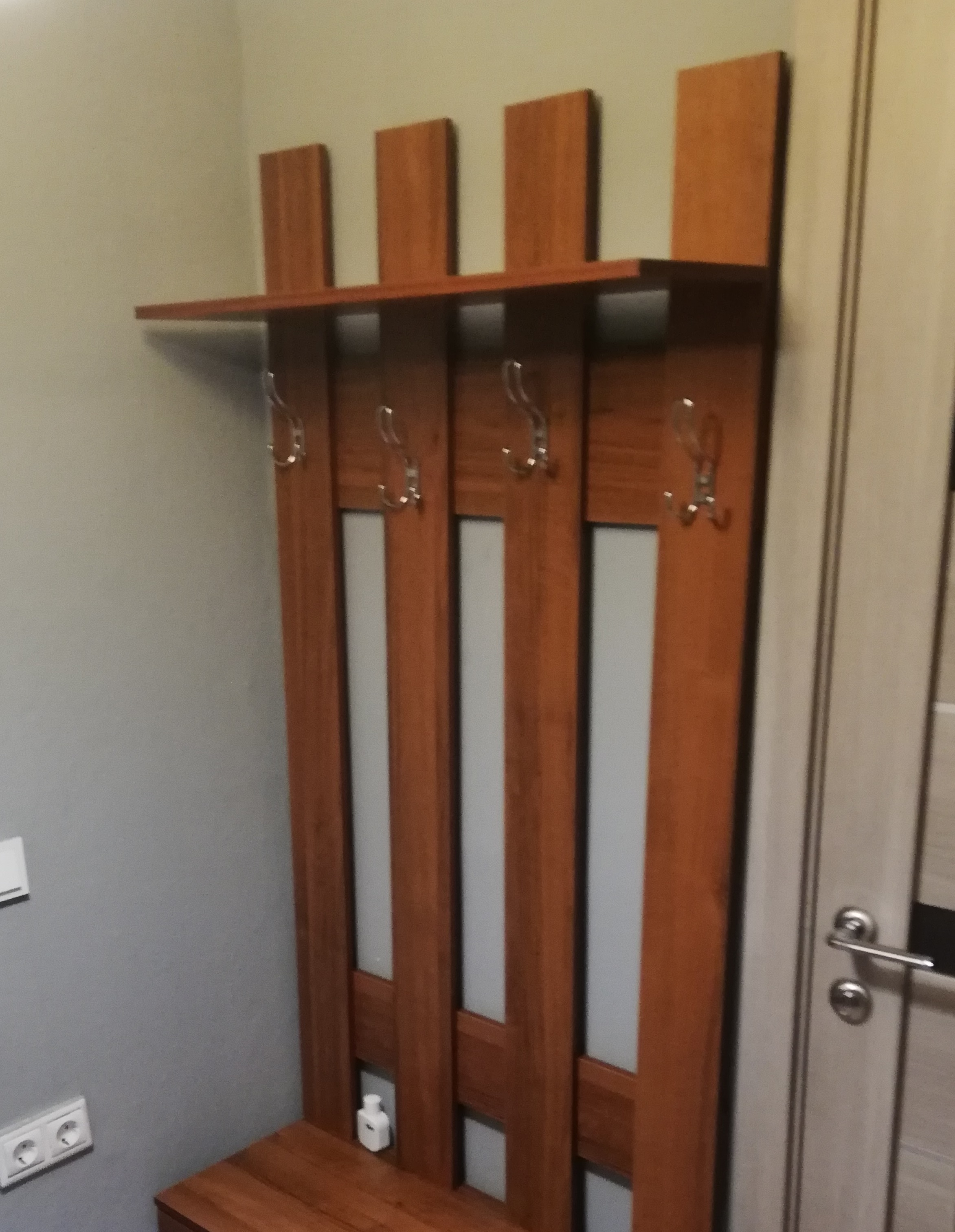 заказ номер 219527. Вешалка пришла без дефектов, по дизайну все отлично и цвет соовтетствует. Качество за эти деньги отличное. Первый раз собирал мебель. В комплекте много мелких креплений, все не считал. Хватило чтобы собрать. Собирается легко, но нужно соблюдать очередность сборки деталей, чтобы все сошлось. Были честно говоря непонятки с тем как ее вешать. На двух гвоздях в гипсокартоне она не удержиться очевидно. Но я вышел из ситуации повесив так чтобы  снизу упиралась в тумбу сняв вертикальную нагрузку.