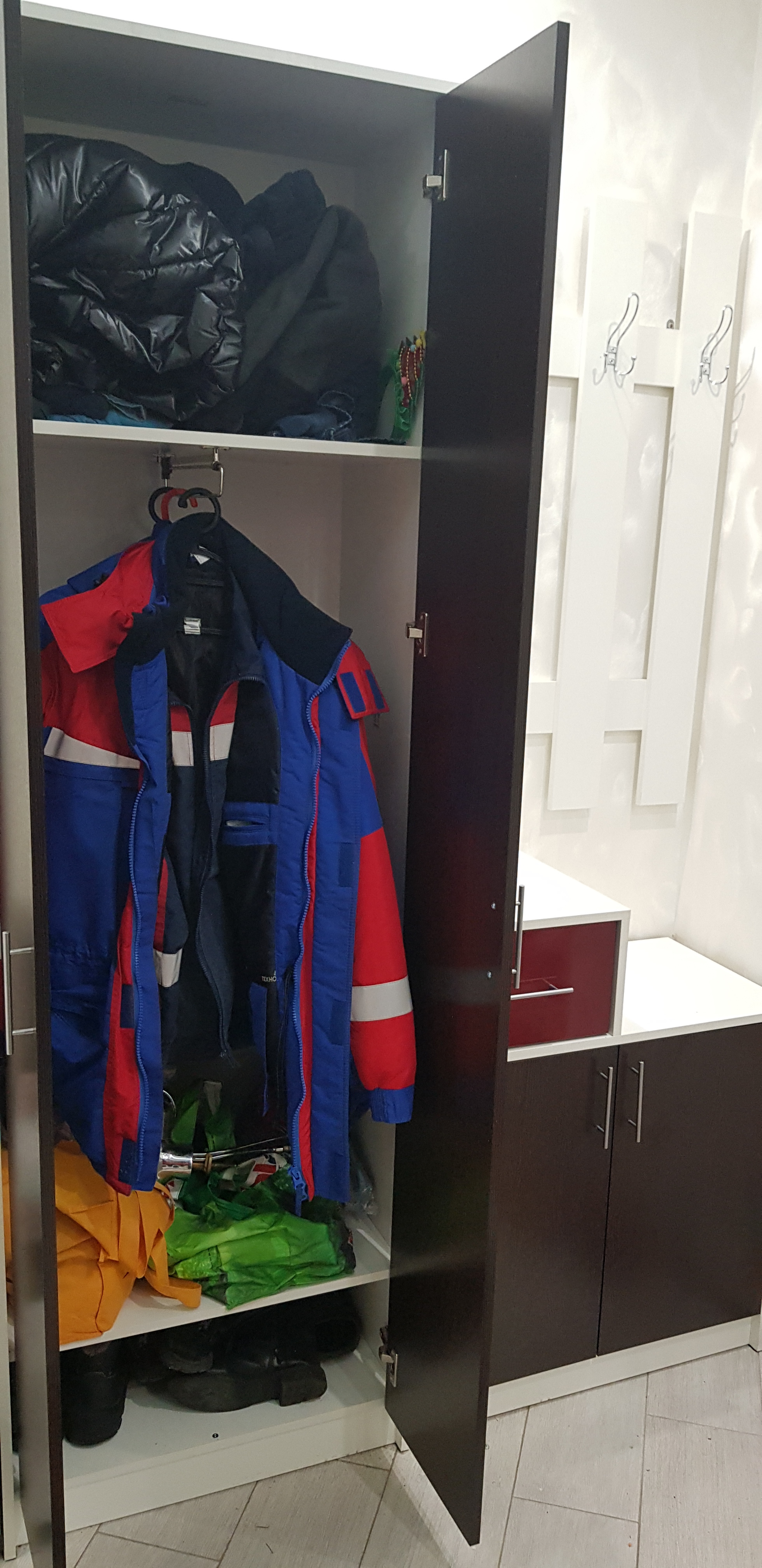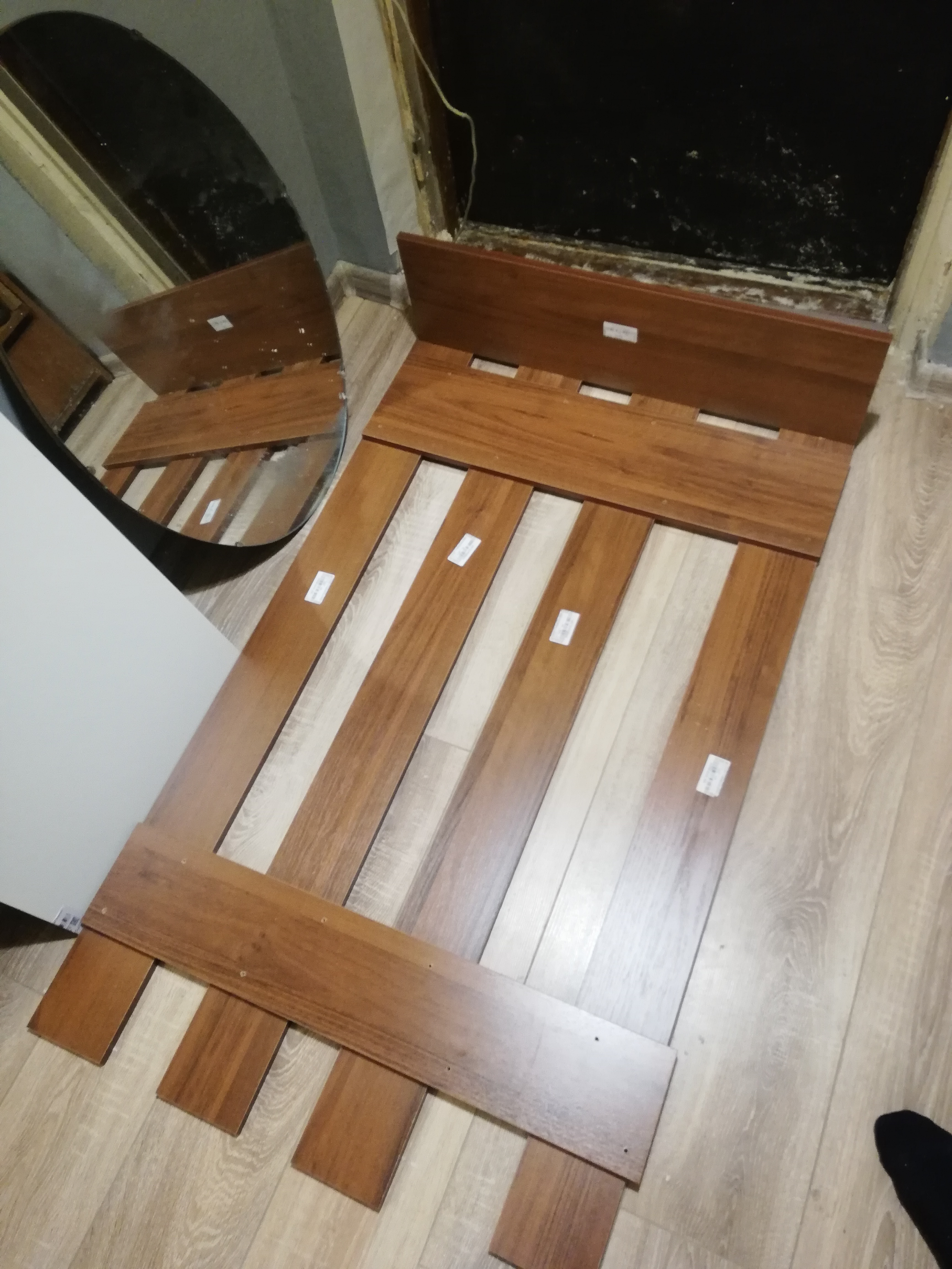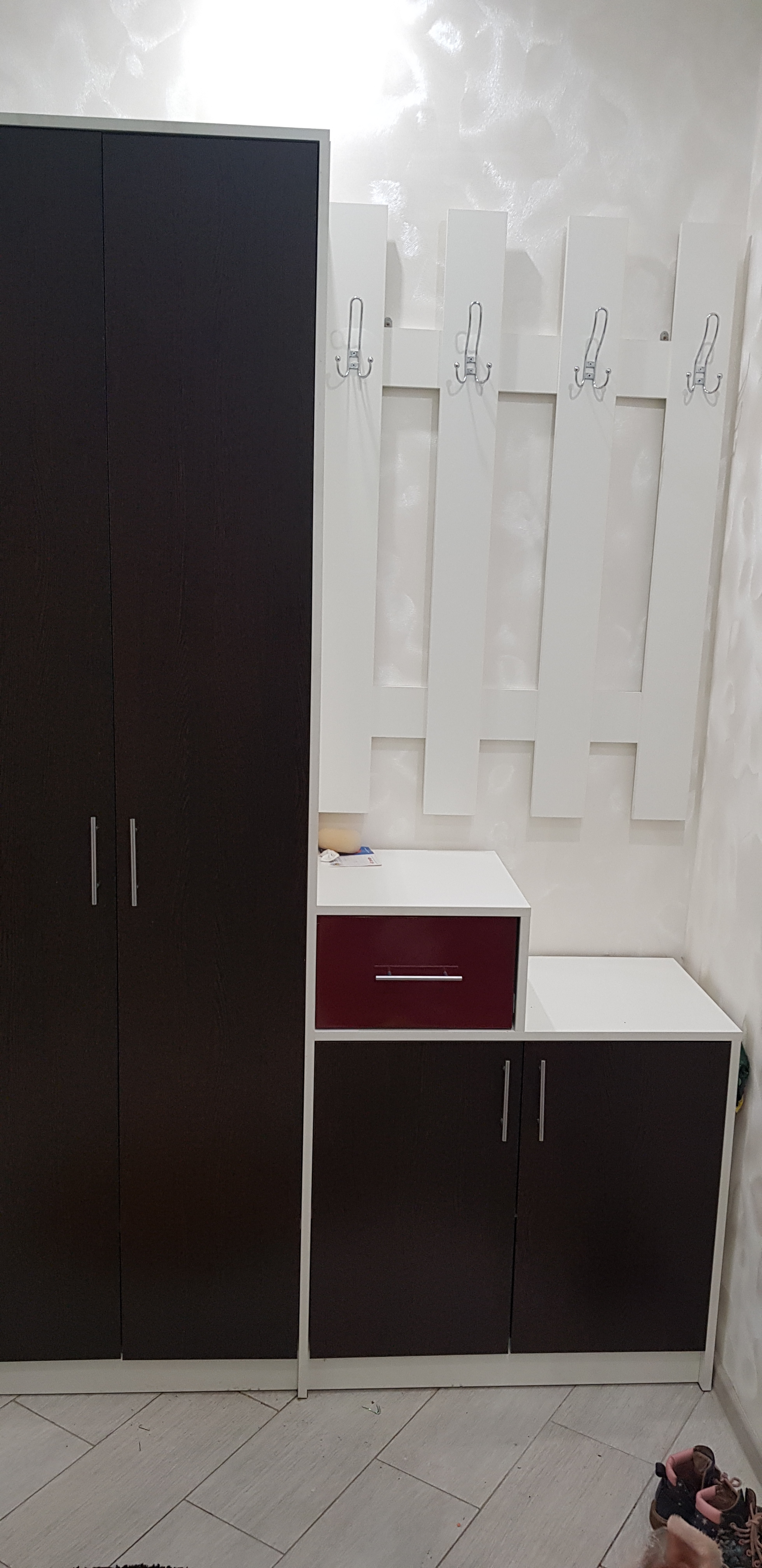 заказ номер 219527. Вешалка пришла без дефектов, по дизайну все отлично и цвет соовтетствует. Качество за эти деньги отличное. Первый раз собирал мебель. В комплекте много мелких креплений, все не считал. Хватило чтобы собрать. Собирается легко, но нужно соблюдать очередность сборки деталей, чтобы все сошлось. Были честно говоря непонятки с тем как ее вешать. На двух гвоздях в гипсокартоне она не удержиться очевидно. Но я вышел из ситуации повесив так чтобы  снизу упиралась в тумбу сняв вертикальную нагрузку.