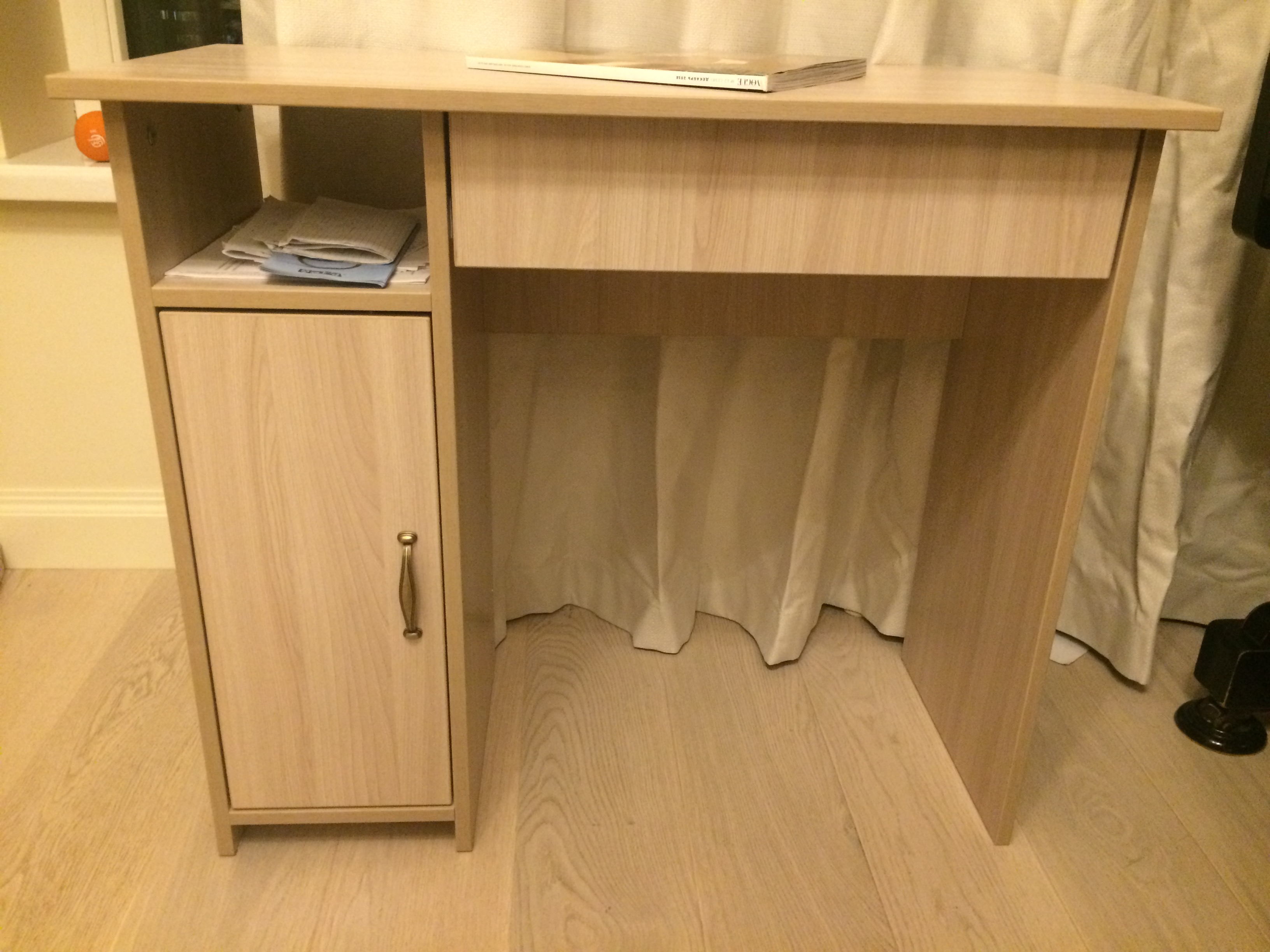 Заказывала Тумбу 1.02 Радуга BMS в качестве прикроватной тумбы в детской комнате. Цвет - "Ясень Шимо Светлый" отлично подошел к уже имеющимся кроватям.Заказывала тумбу со следующими параметрами: Ширина: 440 Высота: 538 Глубина: 530.Получилась довольно вместительная тумба с двумя ящиками.