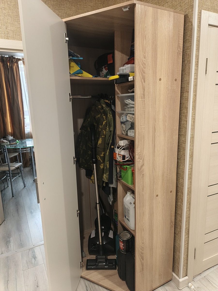 Шкаф распашной Остин Лайт 3 BMS (1400х2600х500). Прекрасный шкаф, хорошее качество исполнения. Прихожую обставила всю из Бестмебель (интересовал именно функционал: чтобы было куда сложить шапки, шарфы(ящики комода), повесить одежду (шкаф), бросить бумаги и сумочку по приходу (консоль)).Был брак на средней дверке на самом видном месте на уровне глаз, попросила заменить-заменили в кротчайшие сроки+доложили петли на две двери(12штук)- изначально их положить забыли, выяснилось в ппоцессе сборки только.Сама заменила штангу (в цвет, с покрытием), "родная" не нравилась-очень уж сильно об нее гремят вешалки.Заказом довольна, рекомендую👍. Огрехи есть, но если не на видном месте-закрываем глазки😉, цена устраивает.